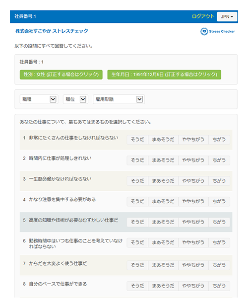 厚生労働省推奨の57項目のストレスチェックがWEB上で受診できます。